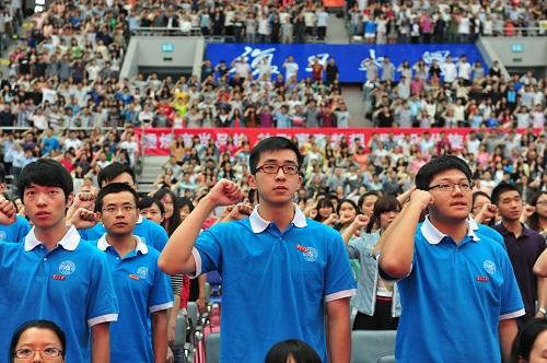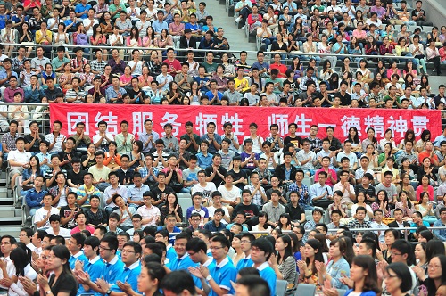 “复旦复旦旦复旦,日月光华同灿烂!”典礼最后,全场研究生新生高唱校歌,共同开启了在复旦的崭新一页。在雄壮激昂的歌声中,2013级研究生开学典礼落下帷幕。