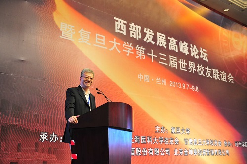 新闻中心讯 9月7日上午,由复旦大学主办,复旦大学校友会、上海医科大学校友会和复旦大学甘肃校友会联合承办的西部发展高峰论坛暨第十三届世界校友联谊会在兰州宁卧庄宾馆开幕。来自世界各地的近400位复旦大学校友汇聚兰州,与甘肃政、商、医、学、文各界人士一齐共话甘肃发展的美好蓝图,共同为建设“美好幸福新西部”,打造中国经济“升级版”出谋划策。