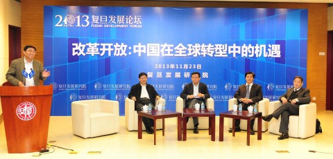 围绕着十八届三中全会通过的《中共中央关于全面深化改革若干重大问题的决定》以及中国在改革开放过程中面临的现实问题,11月23日, 由复旦发展研究院主办的“2013复旦发展论坛”在复旦大学光华楼袁天凡报告厅举行。本次论坛主题为“改革开放:中国在全球转型中的机遇”。