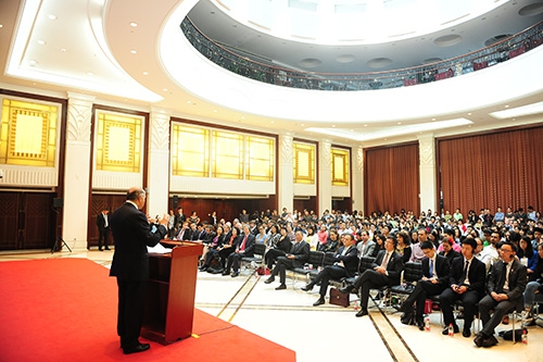新闻中心讯 5月17日上午,正在访华的法兰西共和国外交和国际发展部长洛朗·法比尤斯(Laurent Fabius)登上复旦大学法国研究中心主办的“复旦法兰西论坛”,并向近300位中国师生发表了题为“面对气候失序,人类如何保护环境”的演讲。