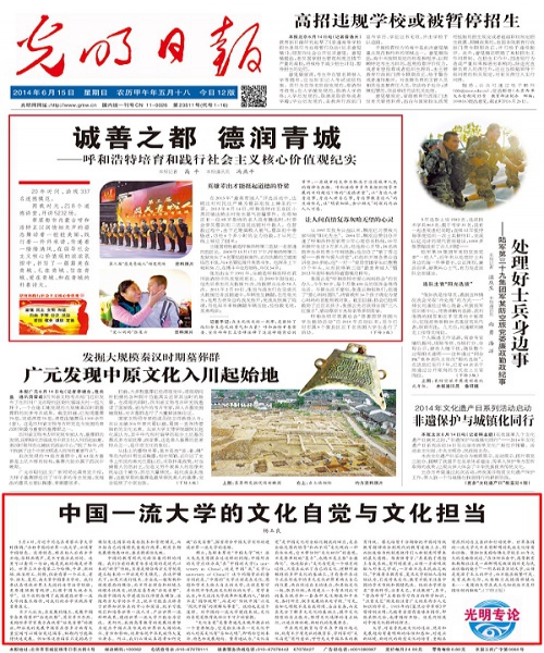 《光明日报》头版刊发校长杨玉良署名文章《中国一流大学的文化自觉与文化担当》