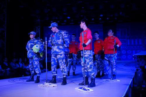 从本届中国校园戏剧节的初赛到复赛,再到刚刚结束的决赛演出,《天之骄子》历经整整两载,易稿数十次。《天之骄子》由复旦大学艺术教育中心讲师周涛担任导演、编剧,为使剧情更真实、角色更有血有肉,周涛在2013年暑期带领演职人员采访了我校参军大学生;不畏酷暑,深入军营一线采风,观摩参军学生的学习、训练、文体活动等,将在军营中感受到的一点一滴转化为舞台上的一言一行。演职人员均由复旦剧社的同学担任,共二十四名演员、十余名工作人员,涵盖了从本科生一年级到研究生三年级的复旦剧社优秀青年力量。在两年来的编演过程中,《天之骄子》先后在复旦校内和上海戏剧学院公演,导演周涛老师每次都根据演出效果和各方意见完善剧本、丰富剧情,同时演员们坚持每周2-3次的排练,从无怨言。临近11月4日的演出时,复旦剧社排练厅每晚都传出嘹亮的军号声,灯常常亮到凌晨,剧组所有成员牺牲了大量的休息时间,最终将一部恢弘大气而感人至深的《天之骄子》呈献在中国校园戏剧节舞台上,传递了复旦学子的正能量,收获了评委老师和观众的一致好评。