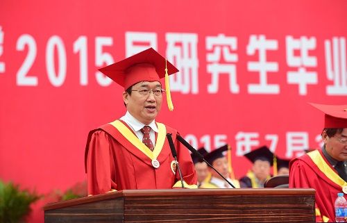 校友代表中国科学院院士、中国军事医学科学院院长贺福初向2015届毕业生送来了寄语。他表达了对母校的深切热爱,并以“上、止、正、王”四字为线索讨论人生,认为它们分别代表了人生的起点、拐点、支点和顶点,从而构成人生四则。
