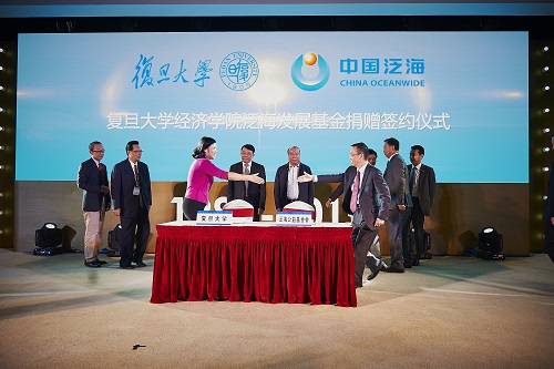 随后,举行了复旦大学经济学院泛海发展基金捐赠签约仪式。中国泛海控股董事长卢志强校友决定在复旦大学经济学院恢复建院30周年之际,由泛海公益基金会向复旦大学经济学院捐赠5000万元,用于支持学院建设。复旦大学党委书记朱之文向卢志强校友颁发了捐赠证书。
