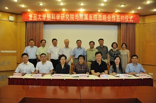2016年9月5日,复旦大学脑科学研究院与附属医院战略合作签约仪式在枫林校区治道楼举行。在复旦大学副校长、上海医学院院长桂永浩,中国科学院院士杨雄里等的见证下,复旦大学脑科学研究院与复旦大学附属中山医院、华山医院、儿科医院、眼耳鼻喉科医院、浦东医院,以及静安区中心医院6家医院签署战略合作协议,这标志着复旦大学神经科学基础与临床的紧密合作将进入到战略联盟协作新阶段。脑科学研究院、医学神经生生物学国家重点实验室、各附属医院的党政负责人,以及学校医学规划与科研办、医院科研管理部门负责人等30余人出席了签约仪式。