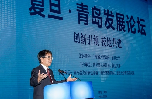 新闻中心讯 为了贯彻落实山东省人民政府和复旦大学签署的战略合作协议,率先实施山东省《关于深化科技体制改革加快创新发展的实施意见》,快速响应青岛市《关于深入推进科技创新发展的意见》,扎实推进复旦大学服务国家战略,9月29日,以“校地共建 创新引领”为主题的“2016(首届)复旦•青岛发展论坛暨复旦大学创新成果博览会”(以下简称“论坛”)在青岛西海岸新区举行。同日,复旦大学青岛研究院正式揭牌。