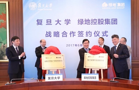 新闻中心讯 6月2日,复旦大学、绿地控股集团战略合作签约仪式在复旦大学光华楼举行。复旦大学与绿地控股宣布共同发起设立校企合作科技创新平台——“绿地光华科技产业集团有限公司”(以下简称绿地光华),加速推动复旦科技、产业优势与绿地资本、市场优势对接。
