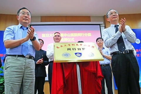 复旦大学常务副校长、上海医学院院长兼党工委书记桂永浩和闵行区委副书记、区长倪耀明共同为复旦大学附属中山医院闵行分院揭牌。