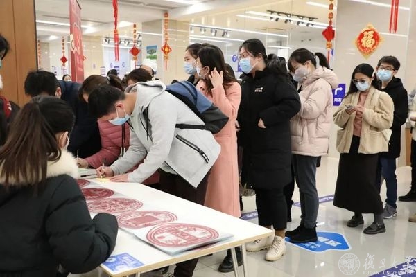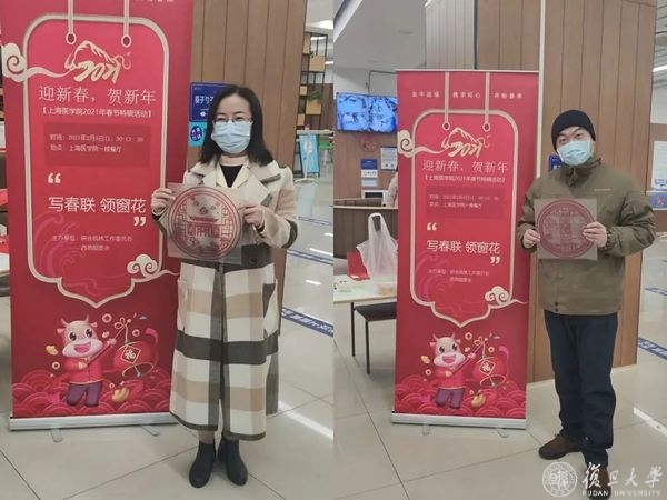 此外,活动现场还准备了由复旦医学生自行设计的5款复旦上医专属窗花,到场的同学纷纷领取。火红的春联搭配上精致的窗花,年味满满。