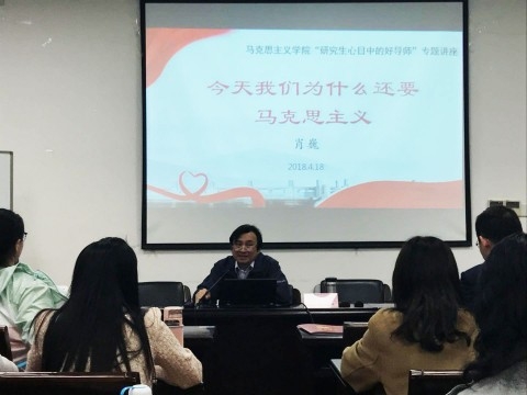 4月18日晚, 马克思主义学院“研究生心目中的好导师”专题讲座举行,由学院全体研究生评选出的“研究生心目中的好导师”肖巍教授,为复旦师生带来了题为“今天我们为什么还要马克思主义”的专题讲座。
