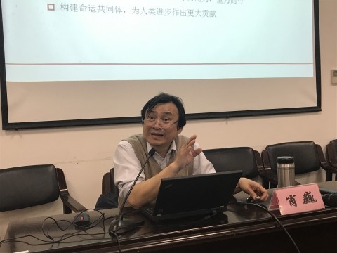 本次讲座属于“相辉讲堂”好导师专场讲座系列,由马克思主义学院青年教师任帅军主持。他从学术造诣、教学水平与科研能力三个部分简要介绍了肖巍教授,并表示,肖巍教授不仅是一位治学严谨的好老师,更是学生们的人生导师,号召全体学生向他学习。