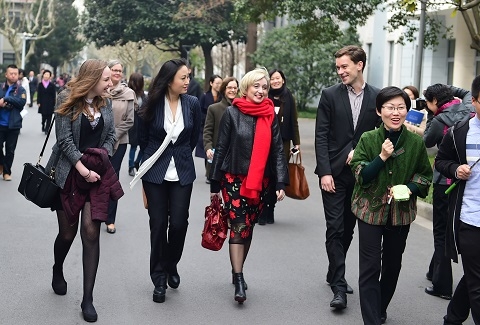 巴西驻沪总领事安娜·佩雷斯、奥地利驻沪总领事施丽伟、新西兰驻沪总领事葛甘楠、马耳他驻沪总领事梁赛、委内瑞拉驻沪总领事莱斯贝斯·莱昂、厄瓜多尔驻沪总领事卡林纳、古巴驻沪总领事李兹培、瑞典驻沪总领事林莉等八位驻沪女总领事,在当天上午参观了复旦校园。从复旦大学北欧中心出发,女总领事们先后来到苏步青铜像、子彬院(复旦高等学术研究院、大数据学院、大数据研究院)、理科图书馆、毛泽东像、曦园、复旦书院、光华楼及国际智库大楼等重要地标,了解复旦悠久的历史和丰富的校园文化,聆听了复旦书院及智库建设等最新情况。