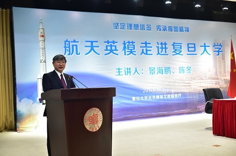 据介绍,“航天英模走进复旦大学”是“时代英模进校园”系列活动的第二场,通过宣传英雄模范人物的先进事迹和崇高精神,诠释时代责任,激励成才报国。希望用榜样的力量,感染人、鼓舞人、带动人,为同学们的学习成长、为学校各项事业发展,注入强大的精神动力。