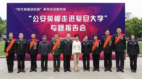 “公安英模走进复旦大学”是复旦大学“时代英模进校园”系列活动的第四场,通过宣传英雄模范人物的先进事迹和崇高精神,诠释时代责任,激励成才报国,树立广大师生实现中华民族伟大复兴中国梦的坚定信心和决心。