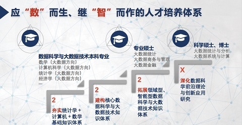 据介绍,大数据学院从社会需求出发,与各类学科进行跨界融合,目前已建设十个面向应用的大数据研究所。作为首家以数据科学与大数据技术方向招生的大数据学院,学院已经建立了2+2+2+X的本硕博人才培养体系。其人才培养“应数而生”,顺应全球大数据技术与产业发展的大势,同时坚持继“智”而做,通过数据+智能,理论+实训的培养模式,为我国大数据产业的发展培养亟需的高端人才。