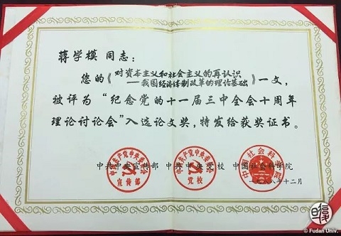 蒋先生自1945年起,在复旦大学文摘社担任编辑;自1949年,担任复旦大学经济学院讲师、副教授、教授。他始终坚持“不怕守旧、不能守旧”的学风,“贴近实践阐释理论、通俗表述传播理论”的文风,为经济学院的发展以及马克思主义政治经济学的中国化、时代化和大众化做出了极大贡献。在近70年的学术生涯中,蒋学模先生一共出版学术专著30余部,主编政治经济学教材和著作10余部、文学和经济学译著10余部。