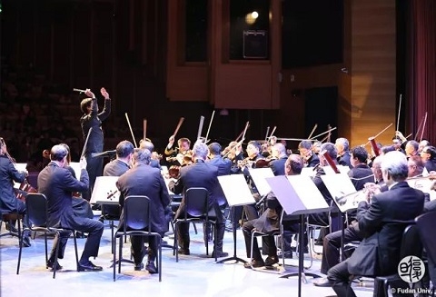 新闻中心讯 3月24日,修缮一新的复旦大学相辉堂迎来了满天星业余交响乐团专场音乐会。中国国家交响乐团指挥王琳琳,中共十八届中央委员、全国政协文化文史和学习委员会副主任叶小文,原国家外文出版局局长周明伟,上海大学原副校长叶志明,解放军总医院教授、博导王玉堂,解放军总医院教授梁浩,湖北省原副省长段轮一等乐团人士为复旦大学师生带来了一场古典与流行交融的音乐盛宴。