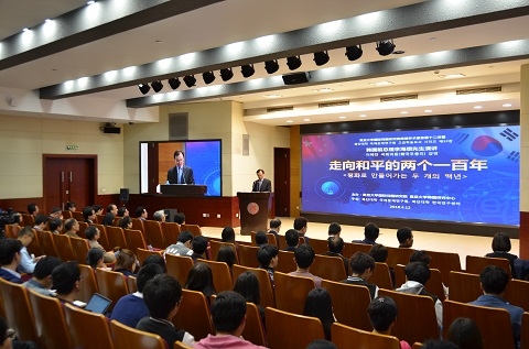 4月12日下午,韩国前国务总理李海瓒访问复旦大学并在国际问题研究院第十二次高端学术报告会上面向200余位复旦师生发表了题为《走向和平的两个一百年》的演讲。
