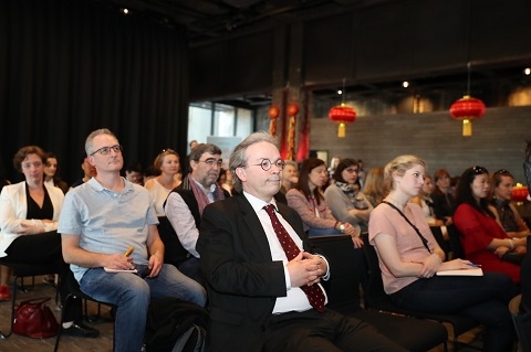 复旦大学党委书记、校务委员会主任焦扬,卢森堡大公国高等教育和研究部部长Marc Hansen,我国驻卢森堡大公国大使黄长庆,卢森堡大学校长Stephane Pallage,卢森堡当地各界人士和华人代表等共计100余人出席揭牌仪式。