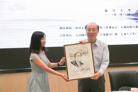最后,学生代表将学生手绘的肖像画赠予赵启正,表达对他的感谢与敬意。