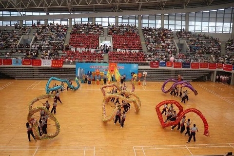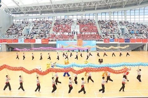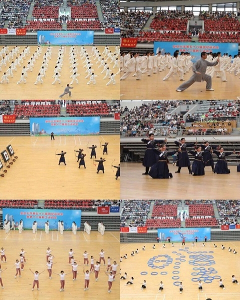 在接下来的开幕式表演中,复旦大学龙狮队和龙狮专项班献上了舞龙舞狮表演《三龙会狮》;太极拳专项班的同学们展现了刚柔并济的太极拳《无极而生》;教职工健美操队的老师们展示了动感的健美操表演《复旦教师尊巴有氧操表演》;体育表演队和健美操专项班的同学们带来了朝气蓬勃的群舞《悦舞复旦 光华灿烂》,在变换的队形中呈现出复旦校徽、光华楼剪影和“2018”字眼。值得一提的是,学校于2016年首次将传统射箭引入学生课堂,射艺专项班的同学们也在本次运动会开幕式表演中展现了射艺《汉风箭韵》。