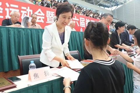 焦扬指出,一流大学离不开一流体育,一流人才更需要健强的体魄。学校始终把体育工作摆在事业发展的重要战略位置,将进一步深化体育课程改革,组织各类阳光体育活动和竞技赛事,加强校内体育场馆和设施建设,满足广大师生体育运动和健身锻炼需求,营造全校上下崇尚体育、热爱运动的良好氛围。她希望全校师生牢固树立“健康第一、终身体育”的理念,练就强健体魄,磨砺坚韧意志,塑造健全人格,养成终身体育锻炼习惯和健康生活方式,立志为祖国健康工作50年。