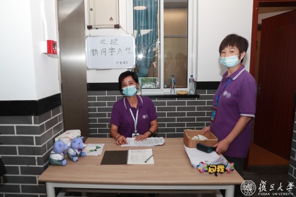 将摊位式集中报到调整为宿舍入住报到,意味着需要更加无微不至的安排。9月初即完成迎新物资的制作、整理、打包和运输工作,用心为学弟学妹们准备入学的第一份“礼物”。迎新当天,志愿者们穿上服装,戴上显眼的帽子和写有“问我”字样的头箍,主动亮明身份,献给萌新复旦初体验。