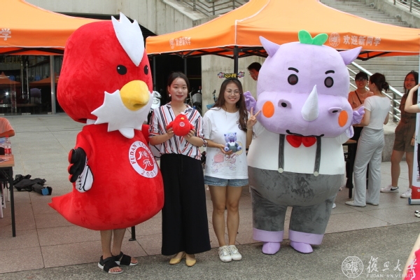 书院手册、笔记本、书签、扇子、书信套装、文件夹、卡套、挂钩……书院学生自主设计主题文创内容,以书院五彩标志色和老校长为元素制作实物产品,汇集成“书院大礼包”,美观性与实用性兼具,倾注着学长学姐们的用心,希望帮助新生尽快熟悉复旦文化,融入校园生活。由学生绘制的老校长卡通形象也在当天亮相,成为新生们纷纷合影的对象。