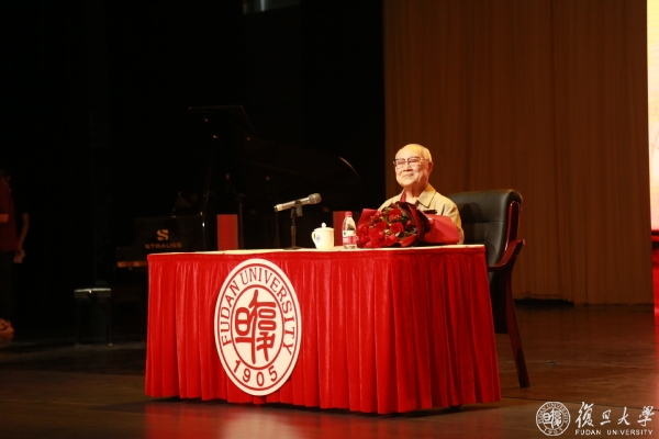 在经久不息的掌声中,精神矍铄的吕其明走上台,向台下师生们深深鞠躬,随后他抬起头,微笑着落座、开讲。