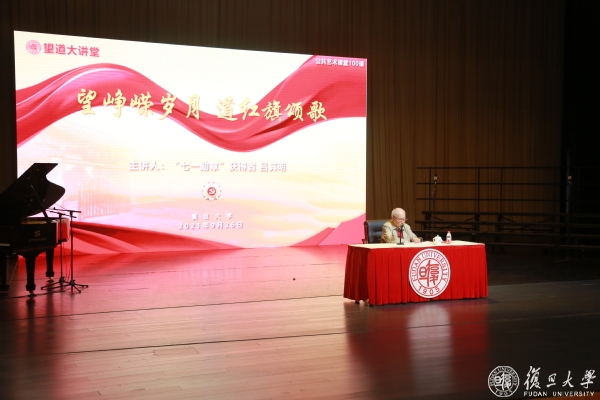 建党百年之际,复旦大学隆重推出望道大讲堂。9月26日下午, “七一勋章”获得者、人民艺术家吕其明,带来望道大讲堂的第一课,题目是《望峥嵘岁月 道红旗颂歌》。吕其明以其音乐人生故事,为复旦师生带来一堂生动的党史学习教育课。这也是公共艺术课堂的第100讲。复旦大学党委副书记许征出席,党委宣传部部长陈玉刚主持。