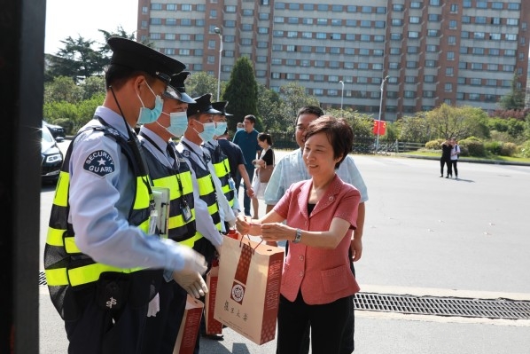 “你们节日坚守岗位,为平安校园做贡献,辛苦了!”