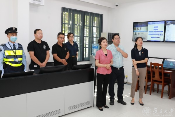 随后,焦扬一行走进保卫处,察看安保监控中枢系统,并详细了解国庆期间留校学生数量、假期各方面活动安排情况、疫情防控和校园安全稳定举措等情况。
