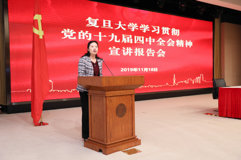 2019年11月18日,按照中央的统一要求和部署,复旦大学党的十九届四中全会精神宣讲团正式成立。下午,党的十九届四中全会精神宣讲报告会举行,校党委书记、党的十九届四中全会精神宣讲团团长焦扬作首场报告。