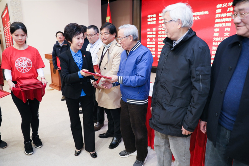 宣讲开始前,焦扬为复旦大学党的十九届四中全会精神宣讲团专家代表颁发聘书。为迅速兴起学习宣传党的十九届四中全会精神的热潮,用习近平新时代中国特色社会主义思想武装师生头脑、凝聚思想共识、指导工作实践、坚定“四个自信”,学校党委决定成立党的十九届四中全会精神宣讲团,成员包括学校党员领导、校“两大工程”专家、长期从事理论研究或宣讲工作的专家学者。根据安排,学校所有二级单位都将至少举办一场专家集中宣讲会。博士生讲师团也将走进学生的党支部组织生活、团日活动和主题班会开展宣讲。