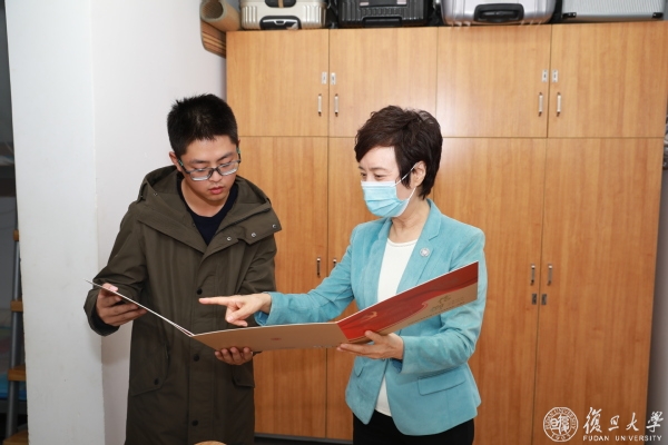 焦扬询问了王麒淦学业情况,王麒淦说:“信息学院的课程我都很喜欢,也非常喜爱自己所学的专业,但是现在课程中编程相关的内容比较多,因为读大学以前没接触过,所以学习过程中有些困难。”了解到他的困惑后,焦扬勉励他不耻下问,刻苦努力,因为学习没有捷径,学生主业是学习,在此基础上,可以积极参加一些有意义的活动。同时,她叮嘱学院和辅导员要给予更多关心。焦扬还鼓励他,积极向党组织靠拢,与老师们和同学们多汇报、多交流。迟楠也对他的学习情况表示关心,叮嘱要抓紧复习,有什么困难可以随时来学院找老师。