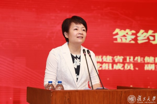 她指出,福建与复旦合作多年、友谊深厚,双方在人才培养、决策咨询、科技创新等各领域取得丰硕的合作成果。多年来,复旦大学为福建医疗卫生系统培养了一批批杰出医学人才,成为福建卫生健康高质量发展的主力。下一步,希望借助实习实践基地建设,持续深化与复旦大学交流,在医疗健康产学研深度融合、干部培训和人才培养等方面深化合作。