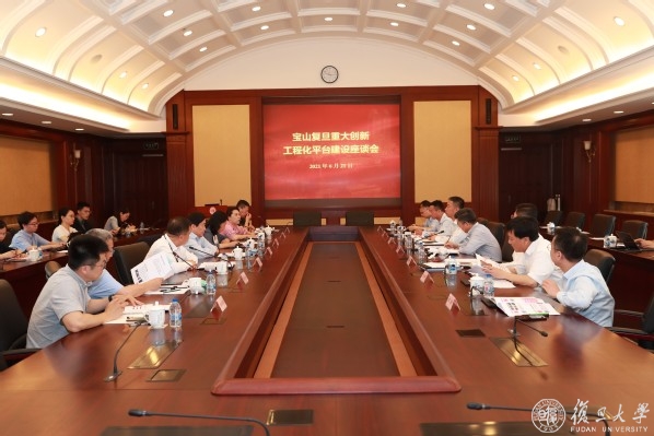 为促进学科链与产业链对接,营造区域科技创新良好生态,6月21日上午,宝山复旦重大创新工程化平台建设座谈会在复旦大学子彬院会议室举行。复旦大学校长许宁生,常务副校长、上海医学院院长金力,党委副书记许征,宝山区委副书记、区长高奕奕,副区长翟磊出席会议。会议由金力主持。