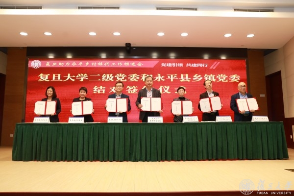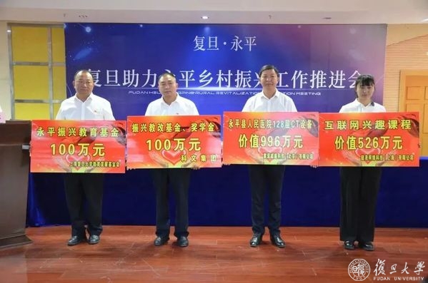 复旦助力永平乡村振兴网络签约仪式上,一批复旦大学二级学院党委和永平乡镇党委结对,一揽子帮扶合作项目签约,一支由信息技术、医药产业、旅游文化、社会治理、生命科学领域复旦专家组成的乡村振兴专家顾问团成立,一批传递真情的采购订单和校友企业爱心捐赠落地,内容涵盖教育、医疗、科研、党建、捐助五大版块,集全校之力,全方位、多维度助力永平乡村振兴。