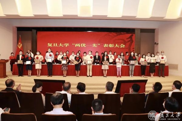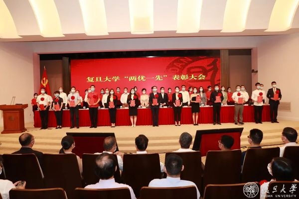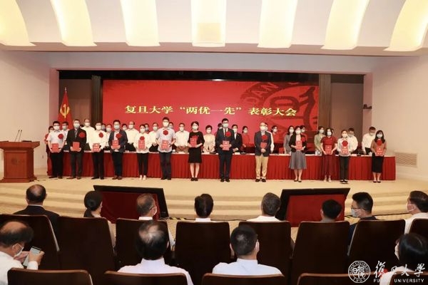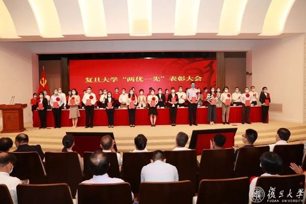 庆祝中国共产党成立100周年之际,6月24日上午,复旦大学优秀共产党员、优秀党务工作者、先进基层党组织(“两优一先”)表彰大会隆重举行,旨在回顾党的奋斗历程,表彰先进集体和个人,大力弘扬先进事迹和崇高精神,激励全校党员传承红色基因,接续百年奋斗,在全校营造学习先进、崇尚先进、争当先进的良好氛围。