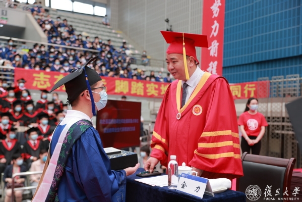 许宁生代表学校为同学们送上祝福。一是胸怀全球,树立远大目标。要对标高质量发展要求和人类命运共同体愿景,站在更高层次的历史方位上定位自身发展。大格局才有大作为,希望同学们今后不论身处何方、从事何种职业,都要树立大志、把握大势,从更宏大的视野和宽广的格局去思考、解决问题,从推动人类社会共同发展进步的角度去定位自身发展,积极履行社会责任与使命。二是永远追求卓越,勇攀创新高峰。一直以来,复旦人始终站在时代潮流前沿,敢为人先,敢于突破,以聪明才智贡献国家,以开拓进取服务社会。希望同学们常怀创新意识,提升创新能力,勇于攻克关键核心技术,敢闯创新“无人区”,开拓新领域争第一,做掌握未来、引领未来的顶尖人才。三是主动担当贡献,服务国家民族。有越来越多的毕业生主动投身西部建设、投身重点领域和重点行业,在最美的青春年华里扎根祖国和人民最需要的地方,在奉献家国的强国梦中书写奋斗华章。希望大家扎根社会、扎根人民,以所学服务社会,无畏艰难困苦,在实干中成就一番事业。