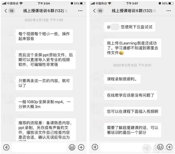 2月10日起,在学校教师教学发展中心的组织下,学校分2批开展了在线教学培训工作,帮助任课教师熟悉超星学习通、PPT录屏等技术方法。为了上好“网课”,老师们在微信群里互相探讨课件制作的技术和方法,无私分享课件制作的心得。除了教学内容,老师们还需要额外做好技术准备:一段5分钟的教学视频,可能录制了不止3遍;一页不到100字的PPT,可能需要躲进深夜避开人声才能安心录制;一个40Mb的课件,可能传了好几次才顺利发布到eLearning平台。