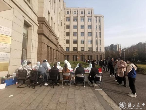 踏实做事,严谨治学——复旦学风一如既往,室外,核酸检测正有序开展,楼内,同学自习身影秩序如常。