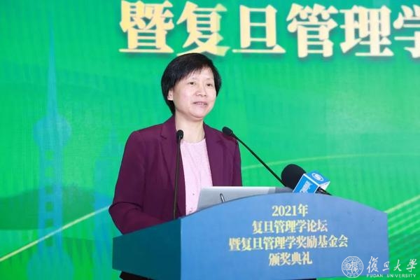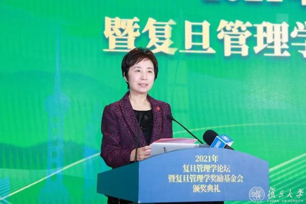 虞丽娟在讲话时指出,复旦管理学论坛自创办以来,每年循环以管理科学与工程、工商管理和公共管理为主题,以具有真知灼见、做出卓越贡献的学界和实业界人士为对象,搭建了理论研究与实践创新的交流平台。复旦管理学奖励基金会始终致力于推动中国管理学事业的发展,激励中国管理学科学人才成长,已成为中国管理学领域最具影响力的奖励基金会。今年,“复旦管理学杰出贡献奖”在管理科学与工程领域评出,为我国的管理科学与工程学科提供了新发展契机,“复旦管理学终身成就奖”更奖励了为中国管理学事业发展做出奠基性、开创性贡献的管理学家,而“企业管理杰出贡献奖”则是对中国改革开放以来卓越企业家代表的高度肯定。