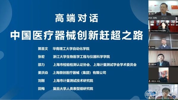 主旨演讲以后,来自华南理工大学自动化学院、国家人体组织功能重建工程技术研究中心教授郭圣文,上海微创医疗器械(集团)有限公司研发技术支持与共享副总裁姜洪焱、上海市计量测试技术研究院教授级高级工程师刘刚以及各主旨演讲嘉宾们围绕《中国医疗器械创新赶超之路》展开了一场跨界高端对话。