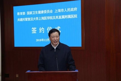 新闻中心讯 12月21日,教育部、国家卫生健康委员会、上海市人民政府共建托管复旦大学上海医学院及其直属附属医院签约仪式在京举行。