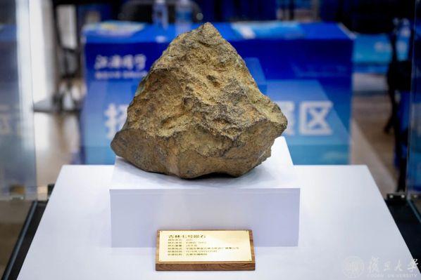 “仰观宇宙、俯察大地、展陈万象、馆校融合”的标语下,博物馆建设展区围满师生。“吉林七号陨石”前,大家贴着玻璃展柜拍摄。
