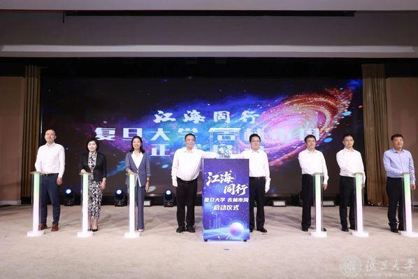 跨越1700公里的山海之约来啦!10月19日上午,复旦大学校长、中国科学院院士金力,复旦大学党委常委、常务副校长许征,复旦大学党委副书记钱海红,复旦大学党委常委、组织部部长艾竹;中共吉林市委书记胡斌,中共吉林市委常委、组织部部长冀广起,中共吉林市委常委、副市长陈洪治,吉林市委秘书长、市委办公室主任明继国在复旦大学吴文政报告厅共同启动“复旦大学·吉林周”。上海市委副秘书长、上海市政府参事燕爽,复旦大学相关部门(院系)负责人、专家教授,吉林市委市政府相关部门负责同志等出席活动。