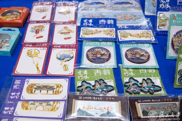 来自吉林市博物馆的特色文创摆在旁边长桌上,精美的外形吸引师生纷纷驻足。