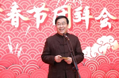 校长许宁生主持团拜会。他向全校广大教师、干部、职工和学生表示亲切的问候和良好的祝愿,向老领导、老教师、老同志们致以诚挚的慰问和崇高的敬意,向为学校事业发展付出心血和智慧的复旦全体师生员工,向长期支持复旦大学事业发展的海内外校友和各界朋友表示衷心感谢。他说,新的一年,让我们更加紧密地团结在以习近平同志为核心的党中央周围,继续保持奋发有为、昂扬奋进的工作状态,继续坚持脚踏实地、求真务实的工作作风,继续发扬敢闯敢拼、乐于奉献的工作精神,加快建设中国特色世界一流大学步伐,共同创造复旦更加美好的明天!