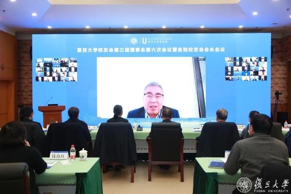 12月18日下午,复旦大学校友会(下文简称“校友会”)在逸夫科技楼举行第三届理事会第六次会议暨各地校友会会长会议。中国科学院院士、复旦大学校长金力出席会议并讲话,校友会副会长张一华、徐明稚、苟燕楠、赵定理、张陆洋、华彪、李曦萌、汪新芽、简昉现场出席。第三届理事会理事、各地校友会会长、校内相关院系校友工作负责人共计160余人相聚云端,共商校友会发展之计。校常务副校长、校友会副会长兼秘书长许征主持会议。